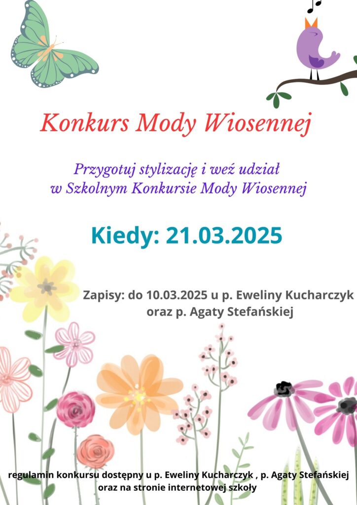 Aktualności Uwaga konkurs! PrzezPiotrek-admin 2025-03-032025-03-03 Konkurs Piosenki Anglojęzycznej Regulamin konkurs mody